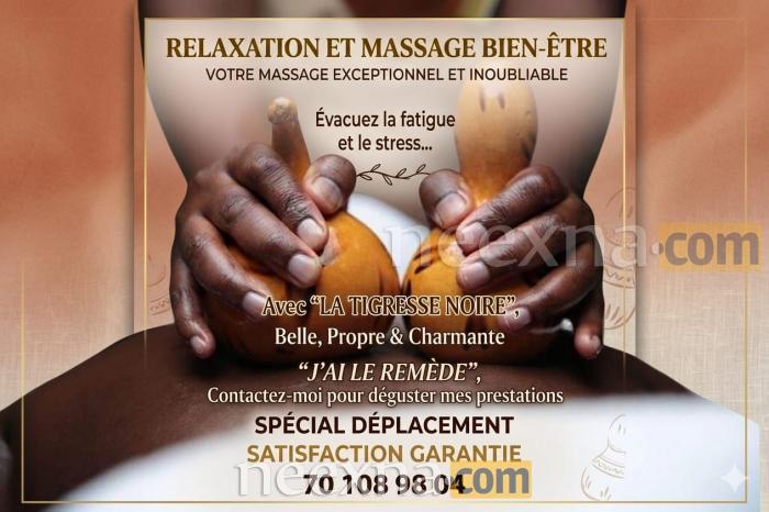 Si vous voulez un bon massage cherchez pas loin nous sommes à votre disposition: 776766631Massages Les délices du massage bien-être et plaisir dans un salon de massage zone paradisiaque situé à Mermoz.Le salon de massage est très heureux de vous accueillir dans un cadre dou...